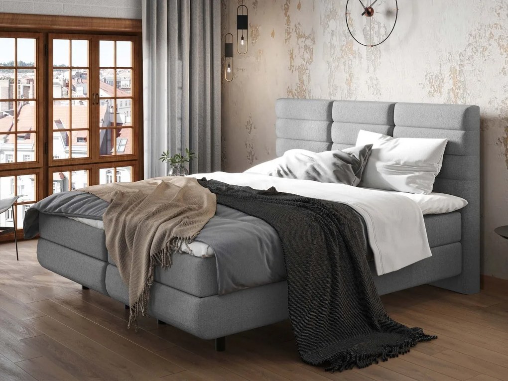 Kontinentálna posteľ Crenig vám poskytne nielen vynikajúci komfort spánku, ale aj eleganciu a štýl vo vašej spálni. Bol starostlivo navrhnutý s ohľadom na najvyššiu kvalitu a vynikajúci vzhľad.Jeho pevná konštrukcia a odolné materiály zaručujú odolnosť a spoľahlivosť. Pohodlný pružinový matrac a mäkké, čalúnené čelo poskytujú bezkonkurenčné pohodlie a podporu pre vaše telo počas spánku. Môžete si byť istí, že každá chvíľa strávená na tejto posteli bude plná relaxu a regenerácie.Okrem toho je posteľ v spálni nielen pohodlná, ale aj funkčná. V základni má priestranné priehradky, do ktorých môžete uložiť posteľnú bielizeň, prikrývky a ďalšie predmety, čím udržíte v miestnosti poriadok.Rozmery:140:hĺbka: 209 cm, šírka: 148 cm, výška: 122 cm, plocha na spanie: 200 x 140 cm,rozmery jedného úložného priestoru (posteľ má dva): hĺbka: 196 cm, šírka: 67 cm, výška: 20 cm,160:hĺbka: 209 cm, šírka: 168 cm, výška: 122 cm, plocha na spanie: 200 x 160 cm,rozmery jedného úložného priestoru (posteľ má dva): hĺbka: 196 cm, šírka: 77 cm, výška: 20 cm,180:hĺbka: 209 cm, šírka: 188 cm, výška: 122 cm, plocha na spanie: 200 x 180 cm,rozmery jedného úložného priestoru (posteľ má dva): hĺbka: 196 cm, šírka: 87 cm, výška: 20 cmPrevedenie:pevný rám: 16 mm hrubá lamino doska + smrekové drevo + 5 mm HDF doska,čelo postele: surová doska hrúbka 15 mm + drevo + vata 800G/M2,hlavný matrac (výška 19 cm): bonellové pružiny + polyuretánová pena, stupeň tvrdosti: H3,topper (matracová plocha) 5 cm: pena so zvýšenou pružnosťou, prešívaný poťah, obojstranný, stupeň tvrdosti: H2,čierne plastové nohy, výška 13,5 cm,dva úložné priestory (na každej strane postele), plynové zdviháky pre ľahké otváranie,maximálna nosnosť úložného priestoru na posteľnú bielizeň: 7 kg,posteľ nie je samostatne stojacaZáruka: 24 mesiacov