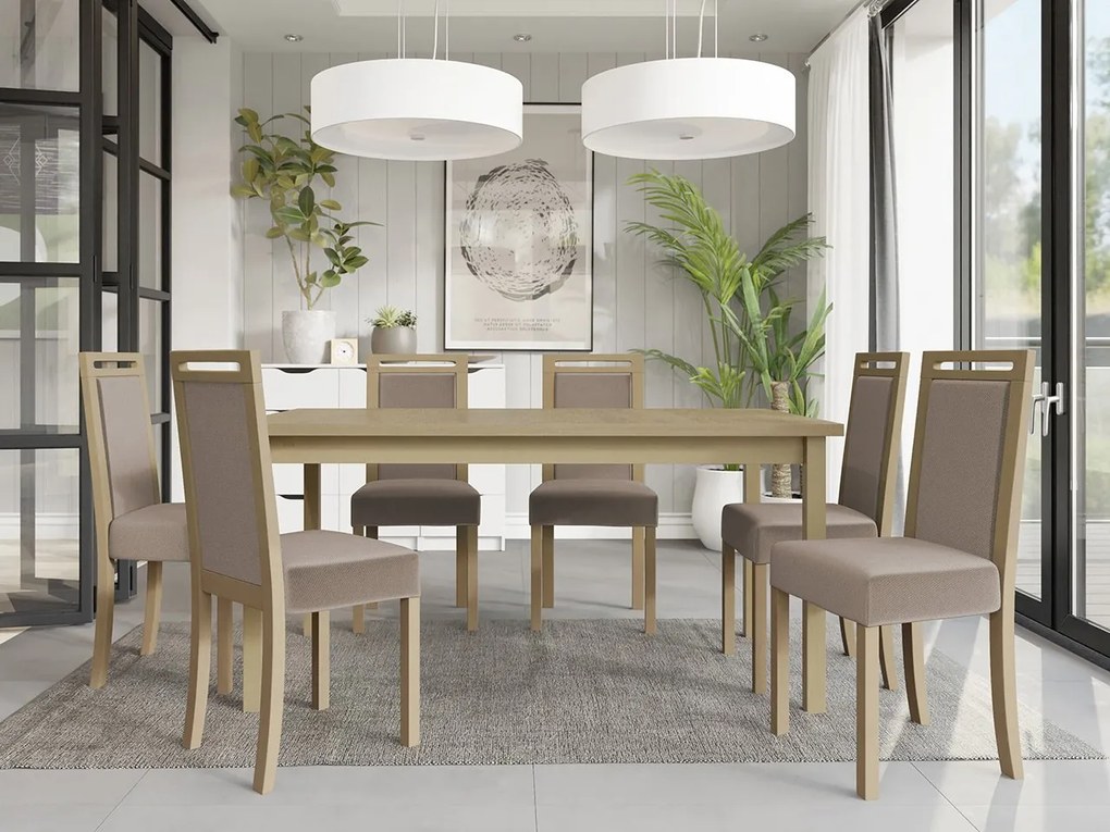 Rozkladací jedálenský stôl so 6 stoličkami AL03, Morenie: sonoma - L, Poťahové látky: 26x - Kronos 22