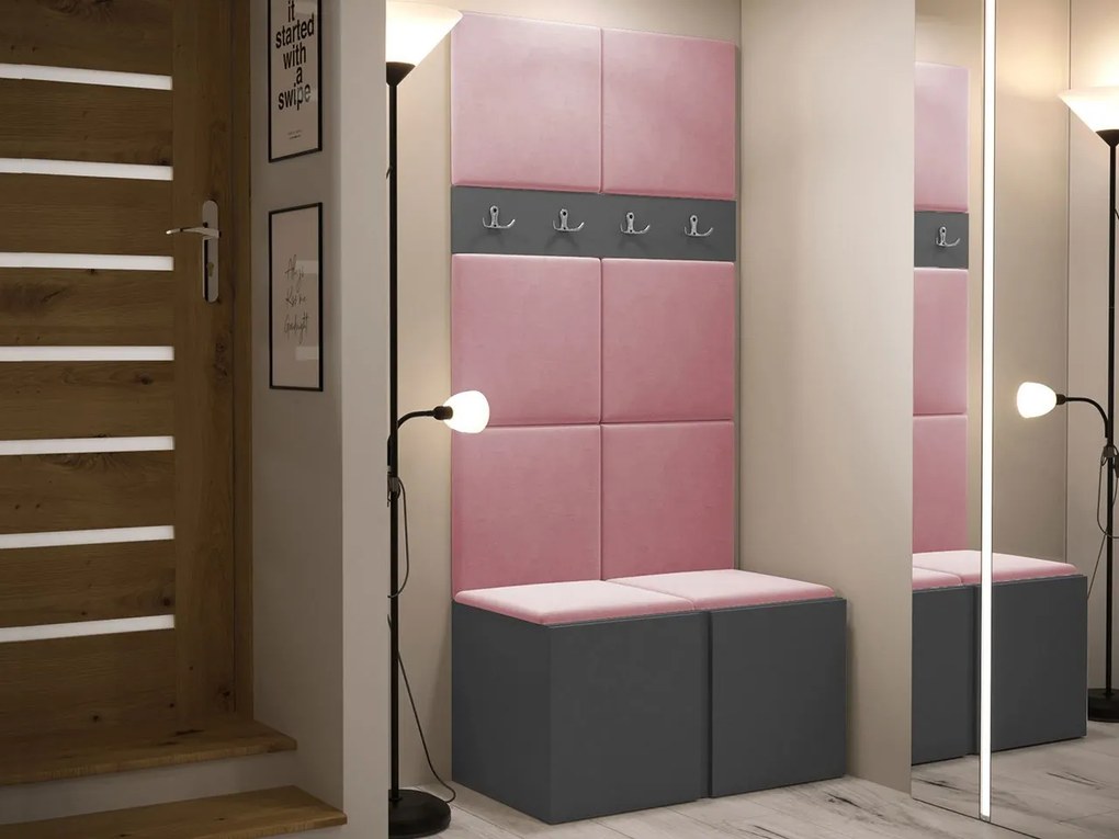 Predsieň Tavasz je kombináciou dekoratívnych prvkov a funkčnosti. Nábytok pozostáva z troch odlišných prvkov. Prvou je botník s niekoľkými policami a pohodlným sedadlom z čalúnených panelov. Čalúnené panely sú prvkom, ktorý skriňu Tavasz odlišuje, sú nielen pohodlnou oporou pri obúvaní, ale aj zaujímavým dekoratívnym prvkom nábytku. Panely sú dostupné v módnych farebných variantoch, ktoré zdôraznia charakter interiéru. Posledným prvkom zostavy je skriňa so štyrmi dvojitými vešiakmi.Skrinky sú univerzálne, takže je možné ich namontovať podľa želania - vpravo alebo vľavo.Lepidlo na panely nie je dodávané s panelmi.Rozmery:Skrinka na topánky:šírka: 84 cm, výška: 42 cm, hĺbka: 46 cm,Vešiak na šaty 84:šírka: 84 cm, výška: 16 cm, hĺbka: 4,6 cm,Čalúnený panel Pag 42x42: x8šírka: 42 cm, výška: 42 cm, hĺbka: 4 cmPrevedenie:16 mm hrubá laminovaná doska,okraje sú zakončené odolnou 0,5 mm PVC dyhou, ktorá je odolná voči každodennému používaniu,žiadne rukoväte,plastové nohy,obyčajné pánty,vešiaky obsahujú 4 dvojité háčikyPrevedenie čalúneného panelu:materiál: základom panelu je doska s hrúbkou 8 mm +3 cm hrubá pena T18 + látka,tvar: štvorcový,3D efekt,chráni steny pred poškodením,zvukotesný,aplikácia: interiér,Záruka: 24 mesiacov