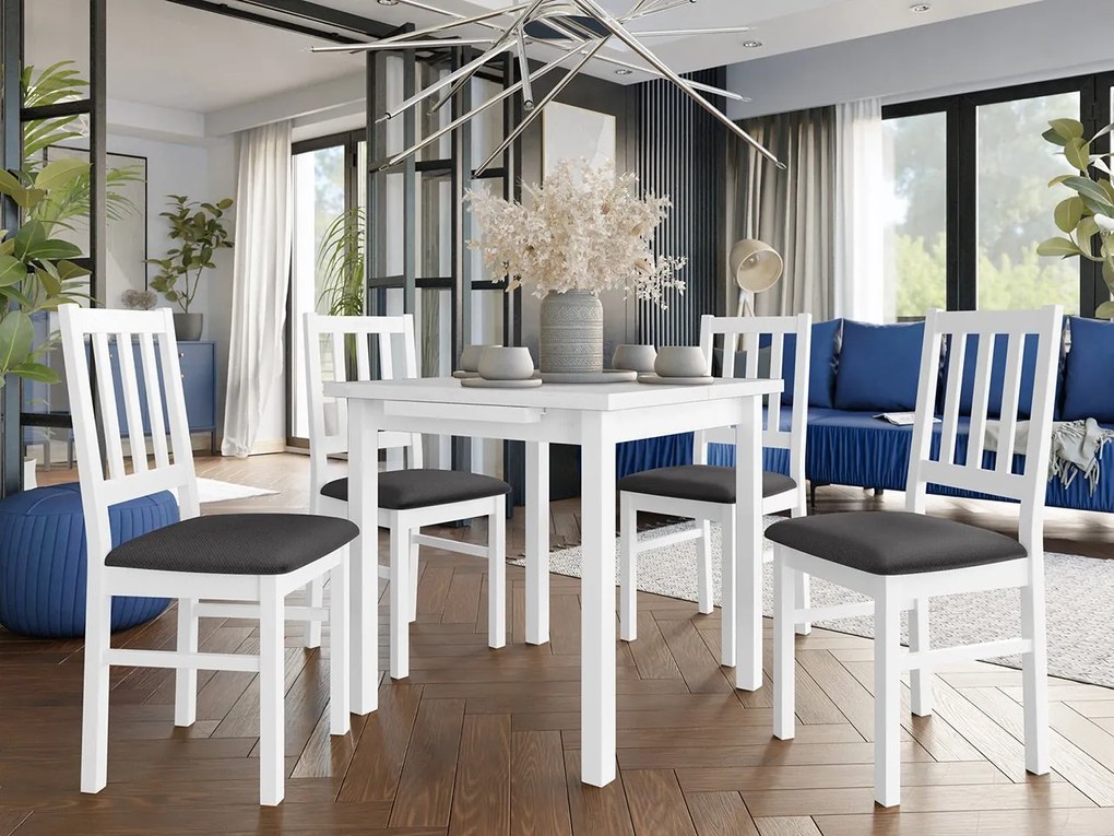 Rozkladací stôl so 4 stoličkami AL09, Morenie: biela - L, Poťahové látky: Hygge D91