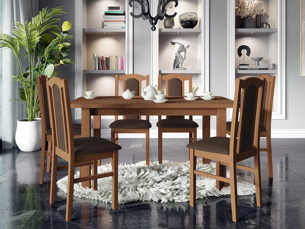 Rozkladací stôl so 6 stoličkami AL06, Morenie: Orech - L, Poťahové látky: Zetta 300