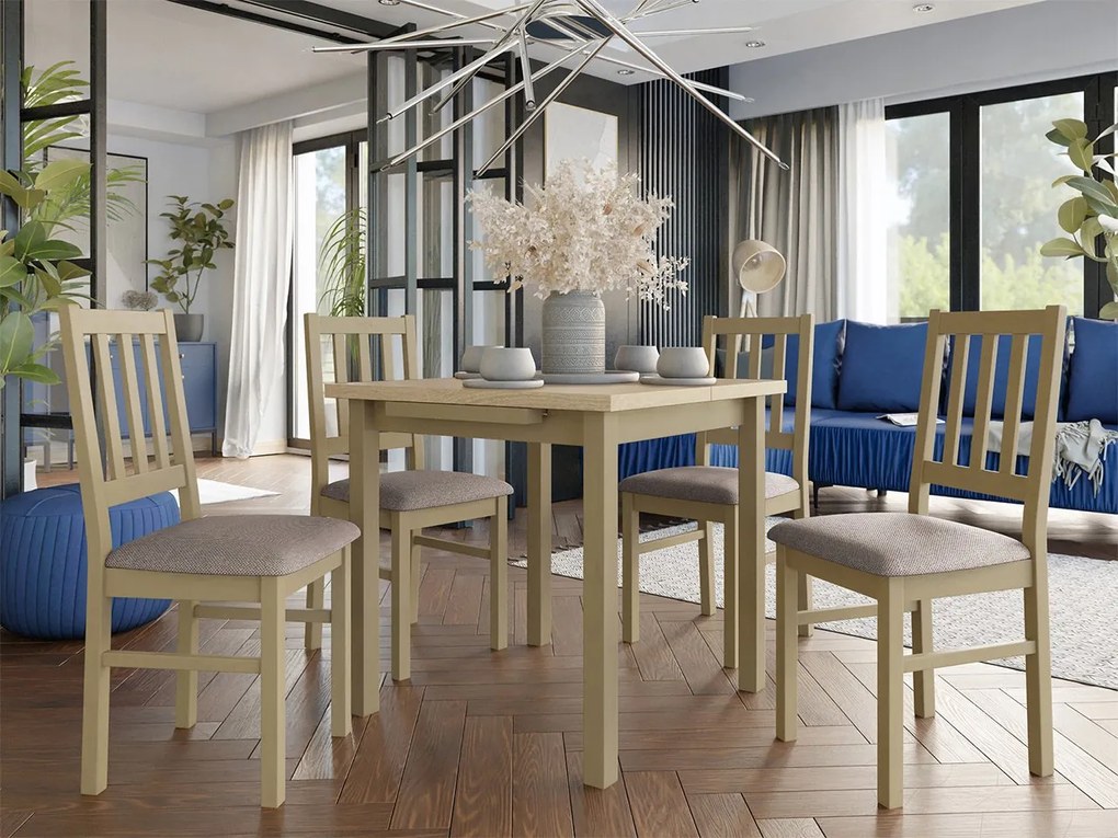 Vybraná varianta:Rozkladací stôl so 4 stoličkami AL09, Morenie: sonoma - L, Poťahové látky: Hygge D91