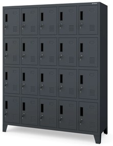 JAN NOWAK Kovová skriňa ROBERT s 20 priehradkami, antracitová Kovová skriňa ROBERT má celkovo 20 úložných priehradiek. Je ideálna na miesta, kde si veľa ľudí potrebuje uložiť svoje súkromné veci na bezpečnom mieste. Vhodná pre firmy, školy, škôlky, fitnes kluby, bowlingové dráhy alebo nákupné centrá. Kompaktné rozmery skrine (šírka 136 cm, hĺbka 45 cm, výška 172 cm) umožňujú umiestniť aj niekoľko jednotiek vedľa seba, čím sa používateľom poskytne ešte viac úložného priestoru. Robustná konštrukcia na dlhé roky Na vytvorenie kovovej skrine ROBERT sme zvolili ten najlepší možný materiál, a to oceľ chránenú práškovou farbou. Plech má hrúbku 0,6 mm a je lakovaný po celom povrchu. To dodáva tejto skrini pevnosť a trvanlivosť, ako aj odolnosť voči korózii a mechanickému poškodeniu. Praktické riešenia Priestranné priehradky - úložné priestory s rozmermi 36 x 24 x 45 cm umožňujú používateľom uložiť do kovovej skrine predmety, ako sú raňajky, prilba, nákupná taška, batoh či topánky. Inteligentný dizajn - vetracie otvory na každých dverách zabezpečujú správne prúdenie vzduchu a zabraňujú hromadeniu vlhkosti. Vďaka tomu zostanú osobné veci uložené v skrini v perfektnom stave. Maximálna bezpečnosť - kovová skriňa ROBERT je vybavená zosilnenými dverami a robustnými zámkami. Pre každú priehradku sú k dispozícii dva kľúče. Miesto na vizitku - vyhradený priestor umožňuje poskytnúť študentom alebo zamestnancom vizitku na meno, čo im uľahčuje používanie skrine. Balenie obsahuje aj nožičky - model ROBERT možno umiestniť na nožičky. Vďaka vyššiemu umiestneniu priehradiek majú používatelia ľahší prístup do ich vnútra a zároveň môžete udržať podlahu pod skriňou v perfektnom stave. Kovová úložná skriňa v antracitovej farbe Životnosť kovových skriniek je priam pôsobivá. Nie je to však jediný faktor, ktorý vás môže presvedčiť o kúpe skrine značky Jan Nowak. Model ROBERT je rovnomerne lakovaný v tmavej antracitovej farbe. S touto kovovou skrinkou s 20 priehradkami bude každý interiér vysoko funkčný a výnimočne štýlový. Montáž - jednoduchšia ako kedykoľvek predtým! Značka Jan Nowak ponúka riešenia, ktoré sú navrhnuté tak, aby ich montáž bola čo najjednoduchšia a najrýchlejšia. V prípade modelu ROBERT tvorí predný panel spolu s dverami jeden prvok. Vďaka tomu montáž tejto kovovej skrinky s 20 priehradkami trvá len približne 30 minút. K skrine sa dodáva prehľadný a jasný papierový návod na montáž. Okrem toho sme spravili aj video, ktoré vám krok za krokom ukáže, ako celý proces montáže prebieha. Toto montážne video nájdete na webovej stránke modelu. Skriňa ROBERT - technické špecifikácie: Farba: antracitová - RAL 7016 Výška: 172 cm Šírka: 136 cm Hĺbka: 45 cm Hmotnosť: 74 kg Záruka kvality Rozmery jednej priehradky: Výška: 36 cm Šírka: 24 cm Hĺbka: 45 cm