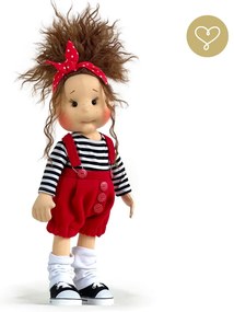 Janka je často nabitá energiou a nápadmi. Nemá v sebe ani kúsok strachu. Jenna je odvážne, energické dievča, ktoré je citlivé na spoločenské javy. Janka má výšku asi 40 cm a je naplnená certifikovaným polyesterovým materiálom. Materiál, z ktorého je vyrobená, je zo Švajčiarska so 120 ročnými skúsenosťami na trhu s textilom. Materiál je špeciálny na šitie bábik. Bábika je určená pre deti od 3 rokov. Starostlivosť o bábiku: -som ručne šitá, preto nikdy nebudem ako iná bábika (aj keď budem mať rovnaké meno) -staraj sa o mňa s láskou -ak ma chceš umyť, urob to ručne, s použitím jemných prostriedkov na pranie, pri teplote okolo 30 stupňov -moje vlasy môžeš česať koľko chceš, nemôžeš ich sušiť, lakovať, kulmovať, nahrievať ani farbiť -bábika má certifikát CE, bola preskúmaná v laboratóriu a získala bezpečnostný certifikát. Meno bábiky je ľubovoľné a poskytnuté iba na účely publikácie. Nie je ani na bábike, ani na škatuli. Čo je to „pohyblivá kostra“: Ide o špeciálnu štruktúru vyrobenú zo vzájomne prepojených plastových prvkov a zabudovanú do tela bábiky, ktorá pripomína ľudskú kostru. Takáto kostra je v prípade ručne vyrábaných látkových bábik absolútne unikátny pojem. Bábika vďaka nemu získava úplne nové schopnosti pózovania, vďaka čomu je hra s ňou oveľa atraktívnejšia. Čo umožní pohyblivá kostra: -Bábiku možno nastaviť do oveľa výraznejšej pózy ako doteraz. -Možnosťou posunutia ťažiska môže bábika stáť na jednej nohe a robiť si napríklad tzv. "lastovičku" -Ohnuté kolená umožňujú položiť bábiku na predmety (napr. na poličku) oveľa atraktívnejšie a vierohodnejšie, a tým pútavejšie. -Nohy bábiky sú ohnuté v mnohých uhloch a na mnohých miestach (nielen kolená, ale aj panva a členky) umožňujú zapletať veci, na ktorých bábika sedí (napríklad hojdací koník, okraj postele) -Bábika vie otáčať hlavičkou nielen zo strany na stranu, ale aj hore a dole. Pozor: Kostra nie je implementovaná v ruke bábiky. Ruky zostávajú bezvládne a voľne visia pozdĺž tela bábiky. VIDEO: https://www.youtube.com/watch?v=wDZzDqfQg2s&t=7s