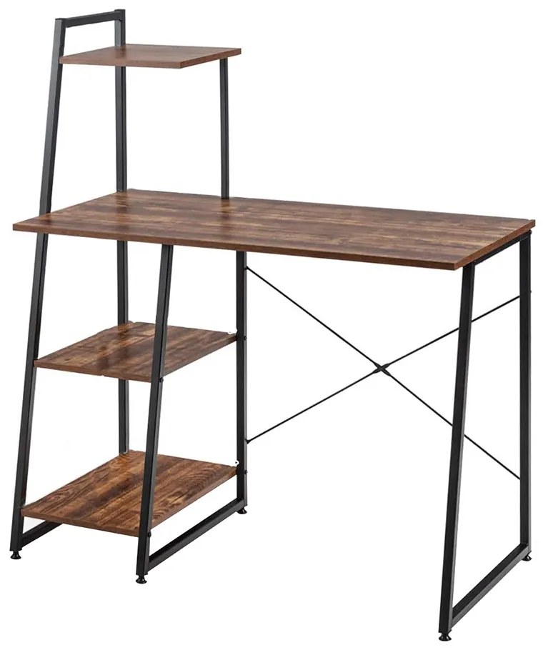 Náš kompaktný počítačový stôl je ideálnou voľbou pre každú domácu alebo kancelársku prácu, kde je dôležité šetriť miestom a zároveň zachovať funkčnosť. Elegantný moderný dizajn a praktické úložné možnosti zabezpečia, že vaše pracovné prostredie bude nielen pohodlné, ale aj štýlové. Elegantný a odolný dizajnPočítačový stôl je vybavený tmavou drevenou doskou a policami, ktoré sú podporované pevným kovovým rámom. Tento kombinovaný materiál poskytuje moderný minimalistický vzhľad, ktorý sa hodí do akéhokoľvek pracovného prostredia – či už do domácej kancelárie alebo profesionálnej pracovnej miestnosti.Praktické úložisko so 4 policamiStôl je vybavený 4 policami, ktoré umožňujú pohodlné uskladnenie pracovných nástrojov, dokumentov alebo dekorácií. Menšie a väčšie police zabezpečujú dostatok úložného priestoru, pričom spodné police sú ideálne na knihy alebo organizéry. Police sú dostatočne silné na uloženie ťažších predmetov.Vynikajúca nosnosť a stabilitaVďaka pevnému kovovému rámu a robustným policám poskytuje stôl stabilitu a dlhodobú odolnosť. Maximálna nosnosť stola je 80 kg a spodné police unesú až 8 kg, takže na stôl môžete umiestniť všetky potrebné predmety.Ideálny na prácuDoska stola má rozmery 100x50 cm, čo poskytuje dostatok miesta na váš laptop, počítač a ďalšie nevyhnutné pracovné nástroje. Správna výška stola a dostupné police vám umožnia udržiavať pracovný priestor usporiadaný a všetky nástroje budete mať vždy po ruke.Technické údajeVýška stola: 77 cmRozmery dosky stola: 100×50 cmŠírka: 100 cmHĺbka: 50 cmVzdialenosť medzi nohami: predná a zadná: 49 cm, bočné: 71 cmDĺžka priečneho rámu: 92 cmRozmery spodných políc: malá polica: 24×39,5 cm, veľká polica: 24×47 cmVzdialenosť spodnej poličky od podlahy: 11 cmVzdialenosť medzi policami: 32 cmRozmery hornej police: 24×25 cmVzdialenosť hornej police od dosky stola: 30,5 cmNosnosť: - Polica na stole: 3 kg - Stôl: 80 kg - Spodné police: 8 kgMateriál: MDF, kovHmotnosť produktu: 12,5 kgHmotnosť balenia: 14,4 kgRozmery balenia: 126×55,5×11 cmObsah balenia1x počítačový stôlMontážne dielyNávod na použitie