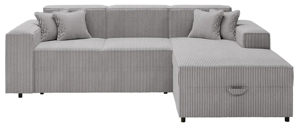Rozkladacia rohová čalúnená sedacia súprava s úložným priestorom do tvaru L AVESTA pravá sivá