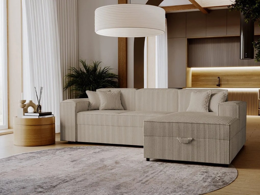 Rohová rozkladacia sedacia súprava s úložným priestorom do tvaru L PRATO ľavá béžová