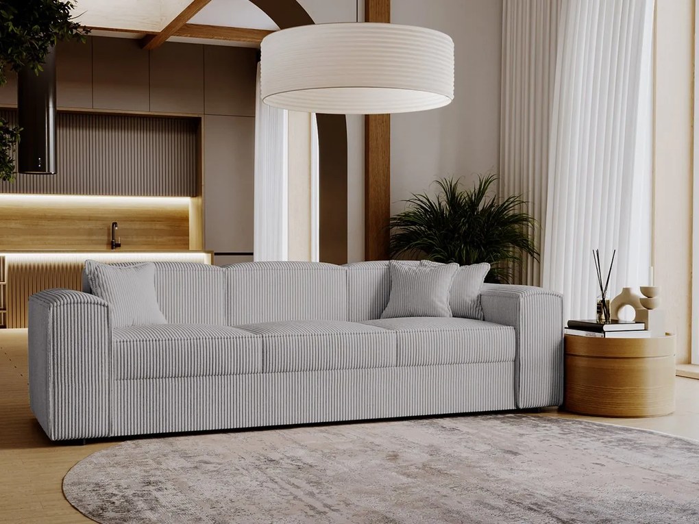 Čaká na vás nový rozmer každodennej relaxácie. Pohovka Sokoz s funkciou spania je štýlový model, ktorý dokonale zapadne do priestoru vašej obývačky. Tento priestranný model je rozkladací a jeho premenu na pohodlné lôžko uľahčuje stroj typu Dolphin.Dodáva sa aj s vankúšmi, ktoré poskytujú pohodlnú oporu pri sledovaní televízie alebo čítaní knihy. Ďalšou výhodou pohovky je, že ide o voľne stojaci variant, takže si môžete vytvoriť rôzne zaujímavé zostavy. Solídne spracovanie, krásna manšestrová látka a nadčasový dizajn určite potešia každého používateľa.Rozmery:dĺžka: 252 cm,šírka: 88 cm,výška: 79 cm,plocha na spanie: rozmery: 137 x 192 cm,Prevedenie:Rám: borovicové drevo + 15 mm hrubá drevotrieska,sedadlo: 12 cm hrubá pena T28 + vlnitá pružina typu A,operadlo: 6 cm hrubá pena T23,pohovka je rozkladacia,automatická rozkladacia jednotka typu delfín,funkcia spania,bez nádoby na lôžkoviny,nohy: čierne klzáky,čalúnené operadlo napevno,vankúše vyplnené silikónovými guľôčkami,vankúše nie sú na zips,vankúše sú súčasťou balenia,pohovka je voľne stojaca (operadlo čalúnené látkou)Záruka: 24 mesiacov