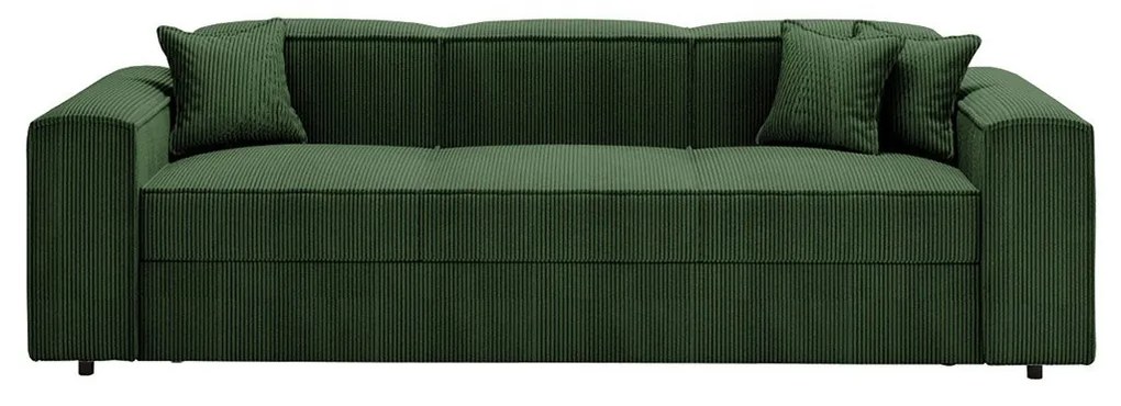 Čaká na vás nový rozmer každodennej relaxácie. Pohovka Sokoz s funkciou spania je štýlový model, ktorý dokonale zapadne do priestoru vašej obývačky. Tento priestranný model je rozkladací a jeho premenu na pohodlné lôžko uľahčuje stroj typu Dolphin.Dodáva sa aj s vankúšmi, ktoré poskytujú pohodlnú oporu pri sledovaní televízie alebo čítaní knihy. Ďalšou výhodou pohovky je, že ide o voľne stojaci variant, takže si môžete vytvoriť rôzne zaujímavé zostavy. Solídne spracovanie, krásna manšestrová látka a nadčasový dizajn určite potešia každého používateľa.Rozmery:dĺžka: 252 cm,šírka: 88 cm,výška: 79 cm,plocha na spanie: rozmery: 137 x 192 cm,Prevedenie:Rám: borovicové drevo + 15 mm hrubá drevotrieska,sedadlo: 12 cm hrubá pena T28 + vlnitá pružina typu A,operadlo: 6 cm hrubá pena T23,pohovka je rozkladacia,automatická rozkladacia jednotka typu delfín,funkcia spania,bez nádoby na lôžkoviny,nohy: čierne klzáky,čalúnené operadlo napevno,vankúše vyplnené silikónovými guľôčkami,vankúše nie sú na zips,vankúše sú súčasťou balenia,pohovka je voľne stojaca (operadlo čalúnené látkou)Záruka: 24 mesiacov