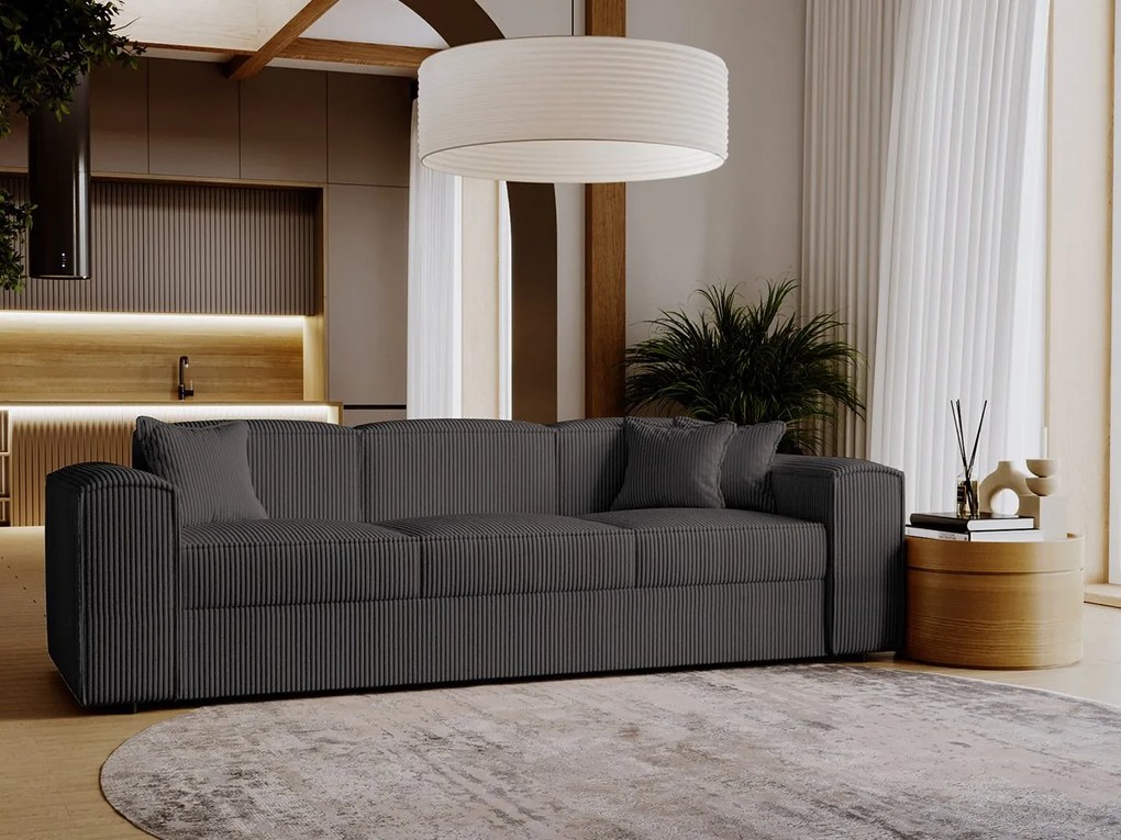 Čaká na vás nový rozmer každodennej relaxácie. Pohovka Sokoz s funkciou spania je štýlový model, ktorý dokonale zapadne do priestoru vašej obývačky. Tento priestranný model je rozkladací a jeho premenu na pohodlné lôžko uľahčuje stroj typu Dolphin.Dodáva sa aj s vankúšmi, ktoré poskytujú pohodlnú oporu pri sledovaní televízie alebo čítaní knihy. Ďalšou výhodou pohovky je, že ide o voľne stojaci variant, takže si môžete vytvoriť rôzne zaujímavé zostavy. Solídne spracovanie, krásna manšestrová látka a nadčasový dizajn určite potešia každého používateľa.Rozmery:dĺžka: 252 cm,šírka: 88 cm,výška: 79 cm,plocha na spanie: rozmery: 137 x 192 cm,Prevedenie:Rám: borovicové drevo + 15 mm hrubá drevotrieska,sedadlo: 12 cm hrubá pena T28 + vlnitá pružina typu A,operadlo: 6 cm hrubá pena T23,pohovka je rozkladacia,automatická rozkladacia jednotka typu delfín,funkcia spania,bez nádoby na lôžkoviny,nohy: čierne klzáky,čalúnené operadlo napevno,vankúše vyplnené silikónovými guľôčkami,vankúše nie sú na zips,vankúše sú súčasťou balenia,pohovka je voľne stojaca (operadlo čalúnené látkou)Záruka: 24 mesiacov