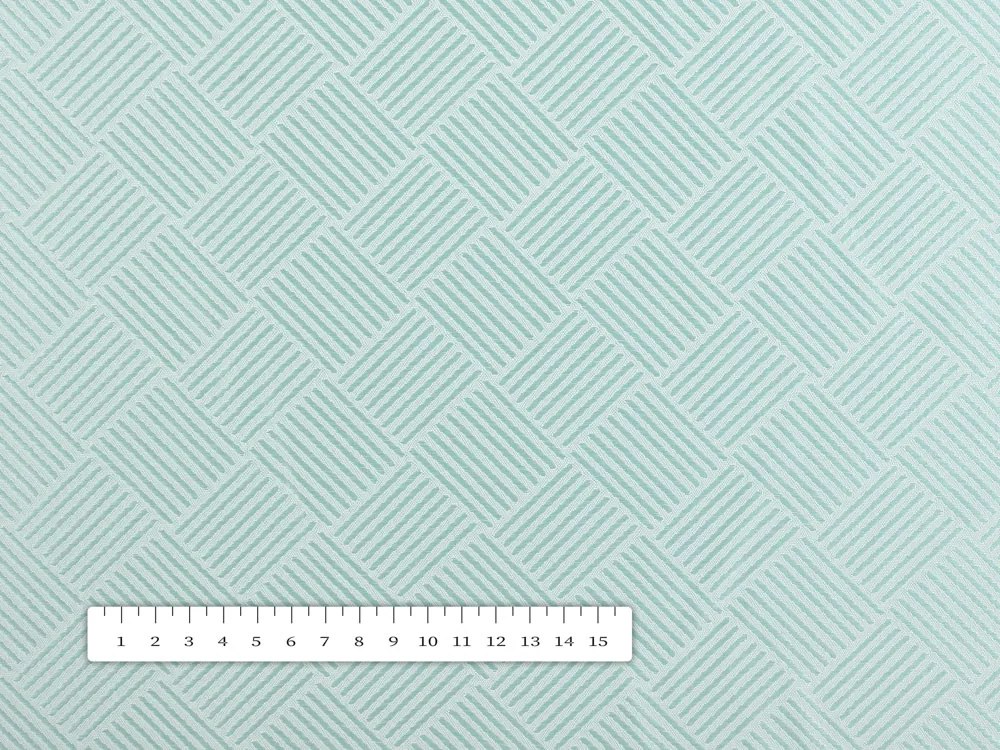 Dekoračná obliečka na vankúš s lesklým designovým vzorom prepletaných štvorčekov v svetlo mentolovej farbe, ušitá zo 100% polyesterovej látky s vodoodpudivou a nešpinovou teflónovou úpravou. Luxusný vzhľad. Je stálofarebná, nezráža sa a veľmi ľahko sa udržuje. Zapínanie na zips je skryté na spodnej strane obliečky a neruší tak jej celkový vzhľad. K obliečkam na vankúše ponúkame aj výplňové vankúše. Šijeme v našich krajčírskych dielňach v ČR, ponúkame aj rozmery na mieru.