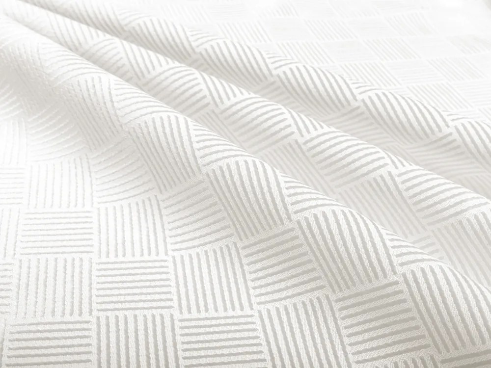 Dekoračný záves s lesklým designovým vzorom prepletaných štvorčekov v smotanovej farbe, ušitý zo 100% polyesterovej látky s vodoodpudivou a nešpinovou teflónovou úpravou, s gramážou 210 g/m2. Z druhej strany je vzor matný bez lesku. Luxusný vzhľad. Záves je určený predovšetkým na dekoračné účely a pre zatienenie miestnosti, nie však pre jej úplné zatemnenie. Záves dodávame kompletne obšitý, s našitou univerzálnou riasiacou stuhou RS-005 (š. 5 cm), ktorá je vhodná pre uchytenie na klasické žabky alebo závesné háčiky. Až doma sa tak môžete rozhodnúť, či si záves nariasíte – viď. detailná fotografia, alebo riasenie nevyužijete a necháte si záves rovný v plnej šírke (dľžke). Nariasenie je veľmi jednoduché – stačí zatiahnúť za sťahovacie šnúrky na konci závesu. Nariasením dôjde ku skráteniu šírky závesu zhruba na polovicu, v závislosti na zvolenej hustote riasenia, výška závesu zostáva rovnaká. Cena je za 1 kus závesu. Ak potrebujete záves na obidve strany okna, objednajte 2 kusy. Uvedené rozmery variantov sú rozmery v roztiahnutom (nenariasenom) stave. Háčiky a žabky na zavesenie nie sú súčasťou závesu. Nevyhovuje Vám ani jeden z nami ponúkaných rozmerov alebo spôsobov uchytenia závesu? Radi Vám ušijeme záves podľa Vašich predstáv a presne na mieru Vášho okna. Šijeme v našich krajčírskych dielňach v ČR.