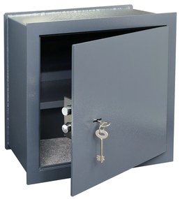 · jednoplášťový oceľový trezor · hrúbka stien 2 mm, hrúbka dverí 6 mm · mechanický zámok s 2 kľúčmi · police vo vnútri - je možné vybrať, nie je možné nastaviť · maximálny uhol otvorenia je 90° · farba sivá (RAL 7016)