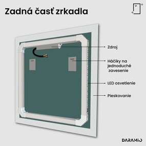 Štvorcové pieskované zrkadlo F1 s LED osvetlením - voliteľné rozmery, extra príslušenstvo, teraz so zľavou a dopravou zadarmo.