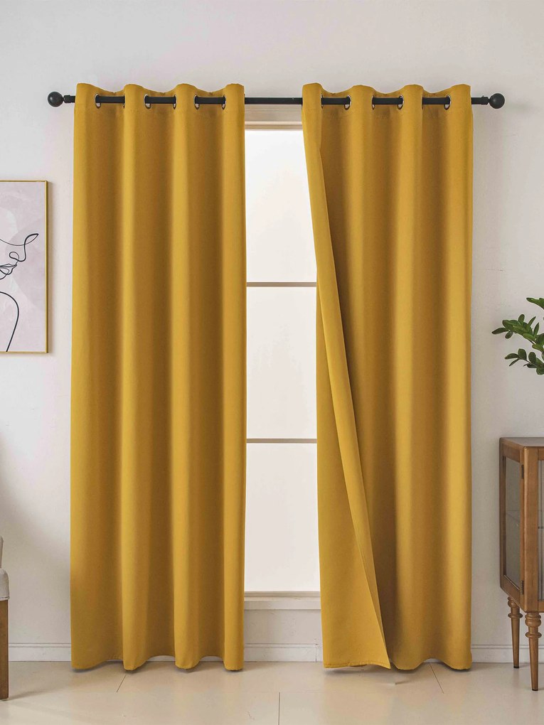 Blackout závesy Elias horčicová - 140 × 280 cm (2 ks) - krúžky