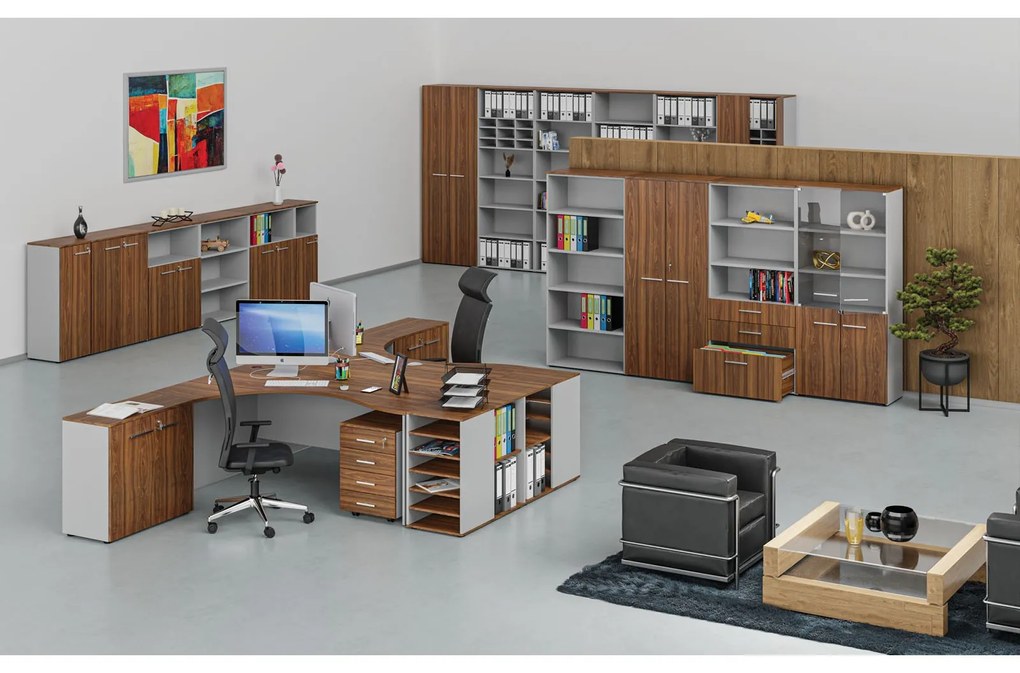 Prístavná policová skrinka k pracovnému stolu PRIMO GRAY, pravá, sivá/orech
