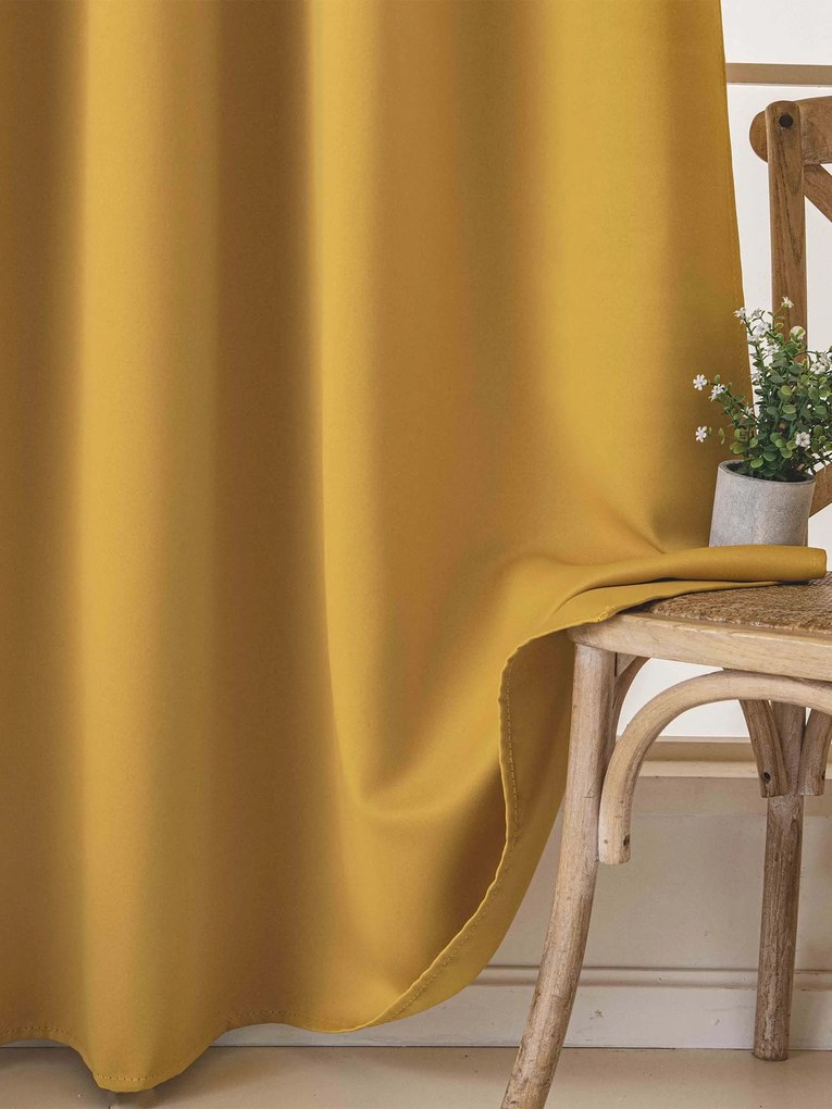 Blackout závesy Elias horčicová - 140 × 180 cm (2 ks) - krúžky