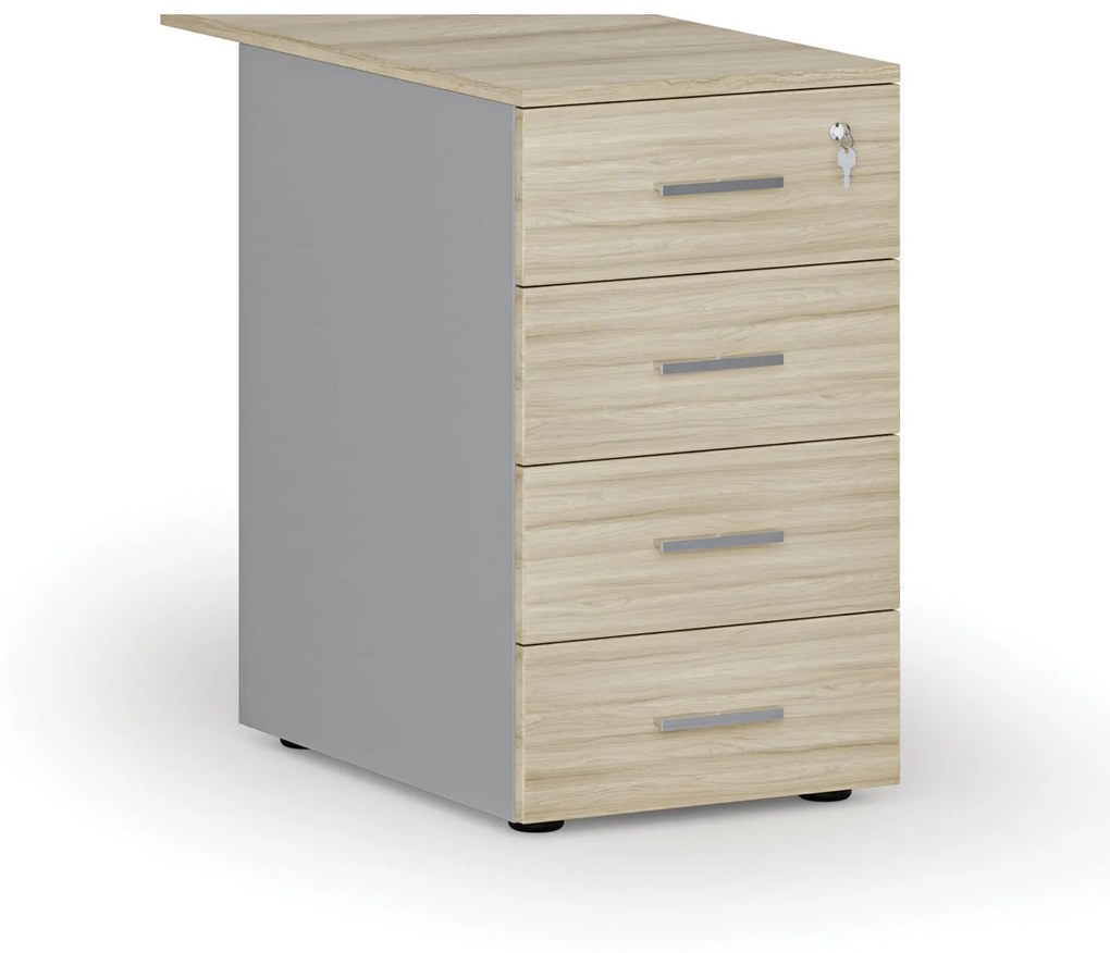 Kancelársky prístavný zásuvkový kontajner PRIMO GRAY, 4 zásuvky, sivá/dub prírodný