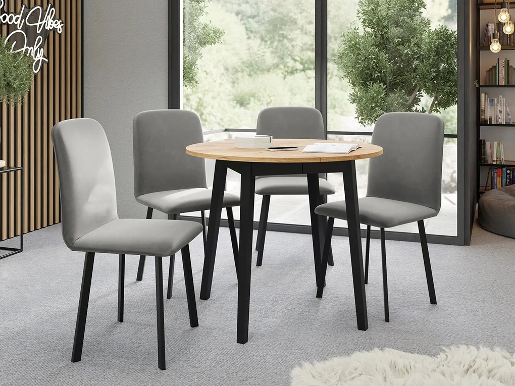 Jedálensky set Kirtore S 90 so 4 stoličkami Lekoz, Farby:: dub kraft zlatý / čierna, Dostupné poťahy: Amor Velvet 4322