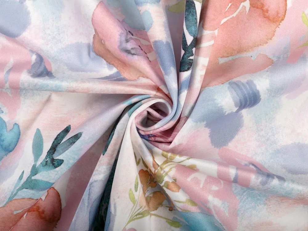 Biante Zamatová obliečka na vankúš Tamara TMR-030 Ružovo-modré akvarelové kvety 70 x 90 cm