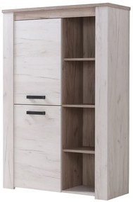 Dizajn nábytku Henry je inšpirovaný vidieckym štýlom, ktorý si svojich priaznivcov našiel aj u zástancov moderného nábytku. Atmosféru domácnosti zariadenú nábytkom vo vidieckom štýle nedá zabudnúť. Kto ju zažil, chce si aspoň pár prvkov preniesť aj do svojho obydlia. Aj mestský domov tak môže zavonět atmosférou útulnosti a tradície. Zástupcom tohto štýlu je vitrína Henry. Na vitríne je dominantným dekórom dub biely, ktorý je snúbeny s dubom šedým. Táto kombinácia pôsobí elegantným dojmom. Vitrínu zdobia plastové úchytky, ktoré verne imitujú kov. Úložný priestor tvorí dvoje dvierka a policový priestor. Za dvierkami nájdete police. Do policového priestoru môžete vystaviť suveníry, cenné kúsky a dekorácie, ktoré chcete mať na očiach. Uzavreté priestory uchráni veci pred nánosom prachu. Vitrína je vyrobená z kvalitného lamina, ktoré vyniká ľahkou údržbou a mechanickou odolnosťou. Rám a horná doska majú hrúbku 25mm, ostatné časti 16mm. Horná doska je vybavená ABS hranami. Rozmery vitríny Henry sú 99,5x36,5x146,5cm (š, h, v). Všetok nábytok patriaci do kolekcie Henry nájdete nižšie v súvisiacich produktoch. Krátka videoukážka vám priblíži vitrínu Henry.