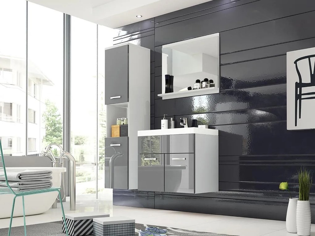 Kúpelňový nábytok Floryna, Farby: biela / šedý lesk, Sifón: bez sifónu, Umývadlová batéria: nie