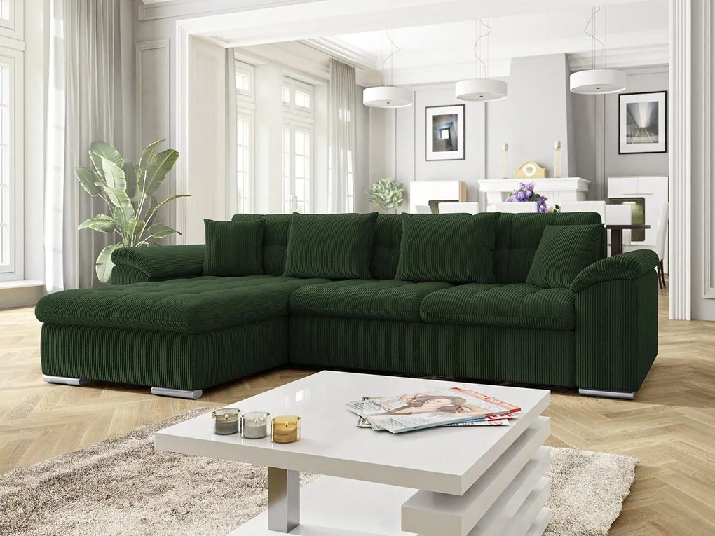 Tmavozelená rozkladacia rohová pohovka ZENA, obojstranná