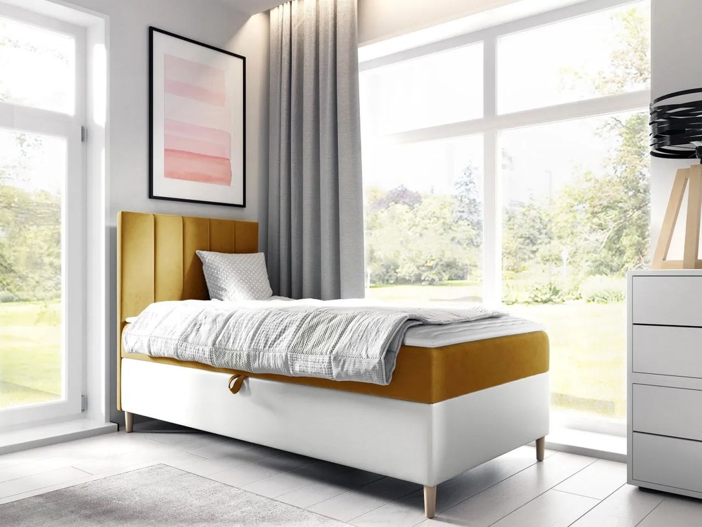 Kontinentálna posteľ Junior Kamire 1, Strana: pravá, Rozmer postele: 90x200, Dostupné poťahy: ekokoža Soft 017 (biela) + Fresh 34