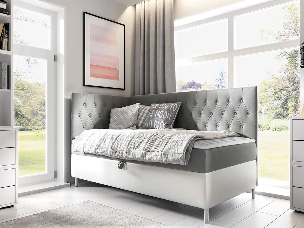 Kontinentálna posteľ Junior Gerdise 3 dodá vašej detskej izbe štýl a jemný šarm. Opierka hlavy je vybavená mäkkou výplňou z vysoko elastickej peny potiahnutej kvalitným čalúnením. Junior Gerdise 3 je kombináciou moderného štýlu s mimoriadnym komfortom a funkčnosťou. Jednolôžko s matracom je dostupné v troch veľkostiach a ponúka aj praktický úložný priestor. Priestor sa ľahko otvára vďaka použitiu špeciálnych pružín.Vysoké čelo umiestnené na šírku aj na dĺžku detskej postieľky je zdobené ozdobným prešívaním. Vyzerajú mimoriadne zaujímavo a dodávajú tomu celému punc elegancie. Moderný charakter zdôrazňujú vysoké nohy, vďaka ktorým je udržiavanie čistoty pod posteľou jednoduché a bezproblémové - čistiaci robot sa pod ňu bez problémov zmestí.Dostupné rozmery:80:hĺbka: 208 cm, šírka: 88 cm, výška: 115 cm,plocha na spanie: 80 x 200 cm,rozmery úložného priestoru: hĺbka: 197 cm, šírka: 77 cm, výška 25 cm,90:hĺbka: 208 cm, šírka: 98 cm, výška: 115 cm,Spacia plocha: 90 x 200 cm,rozmery úložného priestoru: hĺbka: 197 cm, šírka: 87 cm, výška: 25 cm,100:hĺbka: 208 cm, šírka: 108 cm, výška: 115 cm,plocha na spanie: 100 x 200 cm,rozmery úložného priestoru: hĺbka: 197 cm, šírka: 97 cm, výška 25 cmPrevedenie:konštrukcia: 16 mm laminovaná doska + 6 cm hrubé drevo,čelo: 16 mm hrubá doska + T25 vysokoelastická pena,úložný priestor - zdvíhanie vďaka pružinám, vďaka čomu je obsluha veľmi jednoduchá a ľahká,hlavný matrac: bonellové pružiny + T25 vysokoelastická pena,tvrdosť hlavného matraca (stredná vrstva postele): T3 - stredne tvrdý,topper - poťah matraca (poťah Mandula):stredne tvrdý,hrúbka 2,5 cm,prešívaný poťah,topper vyrobený z najkvalitnejších hypoalergénnych materiálov:antibakteriálny a protiplesňový polyesterový úplet 200 gsm,20 mm PU pena: vyznačuje sa vysokým stupňom hustoty, primeranou tvrdosťou a elasticitou, nízkou náchylnosťou na deformáciu, vysokým komfortom používania,netkaná textília z polyesterového vlákna s gramážou 100 g/m2,35 g fleece vyrobený z vysoko kvalitnej netkanej textílie,82 g polyesterové mikrovlákno: priedušné, vysoká absorpcia vlhkosti, antialergické, bariéra proti prachu a roztočom,topper má 4 odolné upevňovacie gumy, ktoré zabraňujú pohybu matraca,lem: olemovaný páskou po obvode,obojstranné - obe strany sú úžitkovou plochou,matrac sa odporúča otočiť každé 2-3 mesiace,prateľný na 30˚Cdrevené nohy, výška 13 cm,posteľ nie je samostatne stojacavýber strany postele určuje, z ktorej strany sa otvára úložný priestorZáruka: 24 mesiacov