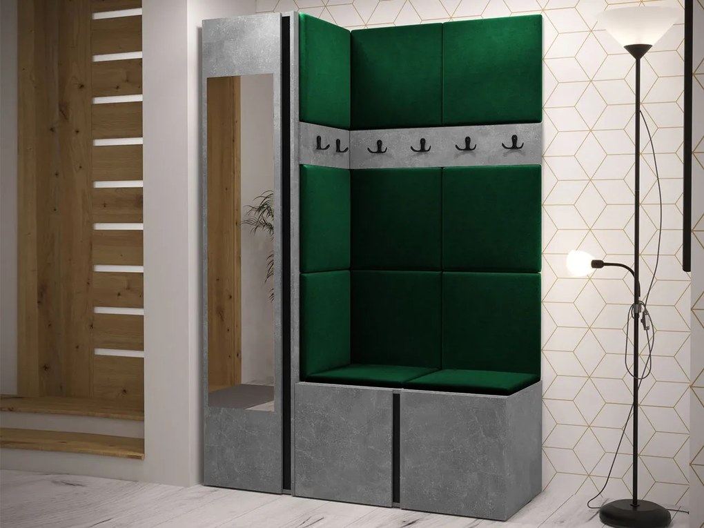 Predsieňová zostava Tavasz X skvele doplní priestor v každom byte. Jeho nepochybnou výhodou je zrkadlo. Toto riešenie ho robí ešte praktickejším, pretože okrem úložného priestoru máme možnosť sa pred odchodom z domu aj rozhliadnuť.Môžete si do nej schovať topánky a ich obúvanie bude mimoriadne jednoduché vďaka tomu, že ide o kus nábytku do predsiene so sedačkou. Farby čiel a čalúnených panelov sú široké a prispôsobené väčšine projektov. Absencia úchytiek dodáva moderný charakter.Je to kus nábytku, ktorý nás víta hneď po vstupe do domu. Stojí za to zabezpečiť, aby šatník bol výkladnou skriňou haly.Rozmery:šatníková skriňa so zrkadlom 40:šírka: 40 cm, výška: 186 cm, hĺbka: 46 cm,skriňa na topánky:šírka: 84 cm, výška: 42 cm, hĺbka: 46 cm,vešiak na šaty 84:šírka: 84 cm, výška: 16 cm, hĺbka: 4,6 cm,vešiak na oblečenie 42:šírka: 42 cm, výška: 16 cm, hĺbka: 4,6 cm,čalúnený panel Pag 42x42 x11:šírka: 42 cm, výška: 42 cm, hĺbka: 4 cmDizajn nábytku z tvrdého dreva:16 mm hrubá laminovaná doska,hrany sú upravené odolnou a každodennému používaniu odolnou 0,5 mm PVC dyhou,žiadne rukoväte,plastové nožičky,bežné závesy,zrkadlo na prednej strane,vešiaky obsahujú 6 dvojitých háčikovČalúnený panel:materiál prevedenia: podklad panelu je 8 mm hrubá doska +3 cm hrubá pena T18 + látka,tvar: štvorcový,3D efekt,chráni steny pred poškodením,pohlcovanie zvuku,použitie: pre interiér,panely ideálne na povrchovú úpravu stienSkrinky sú univerzálne, takže je možné ich namontovať podľa želania - vpravo alebo vľavo.Lepidlo na panely nie je dodávané s panelmi.Záruka: 24 mesiacov