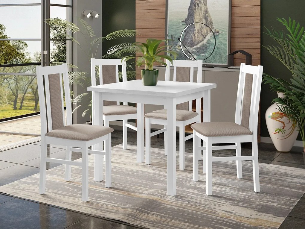 Stôl so 4 stoličkami - AL27, Morenie: biela - L, Poťahové látky: Hygge D91