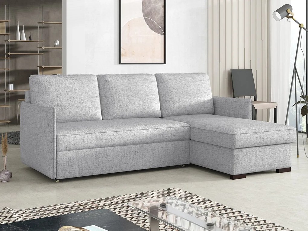 Rozkladacia rohová čalúnená sedacia súprava s úložným priestorom do tvaru L AVESTA pravá sivá