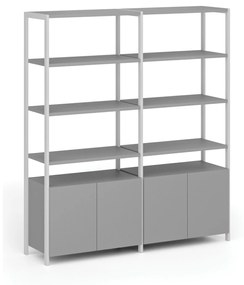 Dvojitá policová stena HOME OFFICE s policovou skrinkou, biela/sivá