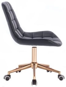 Stolička PARIS na zlatej podstave s kolieskami Luxusná moderná a pohodlná stolička s jednoduchým, ale originálnym tvarom vyrobená z modernej a príjemnej umelej kože. Je určená na všestranné využitie - do kancelárií, predajných miest, salónov krásy, kaderníctva, pre stánky na veľtrhoch, info pointy a mnohé ďalšie miesta. Vhodná do interiérov všetkých štýlov, pretože je elegantná, jednoduchá, kvalitná a vkusne prešívaná. - Pneumatické nastavenie výšky - Poťah z kvalitnej syntetickej kože - ľahko umývateľný, dobre sa udržuje v čistote. - Otočné sedadlo (360 stupňov) - Kovová základňa s kolieskami, vďaka kolieskam sa s ňou ľahko manipuluje. Rozmery sedadla na obrázku - výška sedadla od zeme min. - 40 cm - Výška sedadla od zeme max.- 55 cm Nosnosť 120 kg