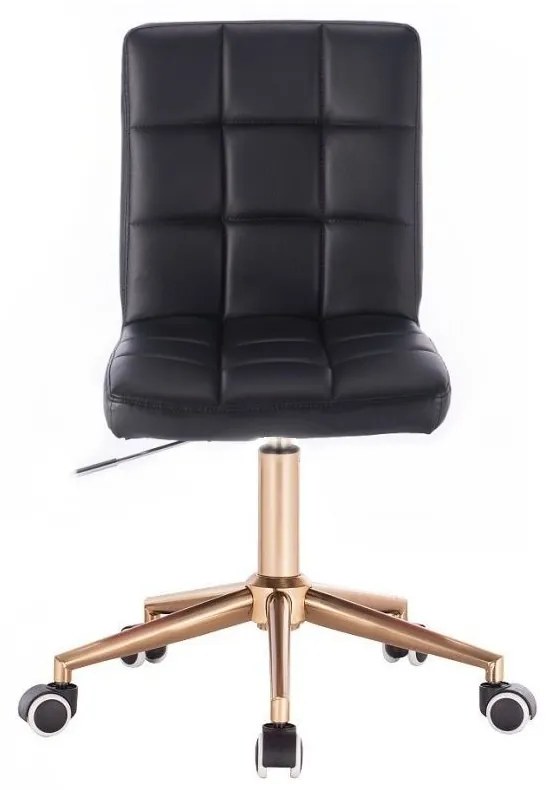 Stolička TOLEDO na zlatej podstave s kolieskami Stolička zaujme svojim originálnym dizajnom aj náročného užívateľa. Pre svoj elegantný vzhľad je vhodným vybavením nielen pre moderné kuchyne, reštaurácie, bary, exkluzívne obchody, salóny krásy, kadernícke salóny, elegantné kancelárie, stánky na veľtrhoch, informačné centrá. Sedák aj opierka chrbta sú polstrované a potiahnuté prešitou umelou kožou, ktorá sa ľahko čistí. Oceľová konštrukcia je výškovo staviteľná, vďaka kolieskam sa s ňou ľahko manipuluje. - výškové nastavenie - pneumatické - otočné sedadlo (360 stupňov) - kovová základňa s kolieskami - Rozmery sedadla na obrázku - výška sedadla od zeme min. - 38 cm - výška sedadla od zeme max.- 56 cm - Nosnosť 120 kg