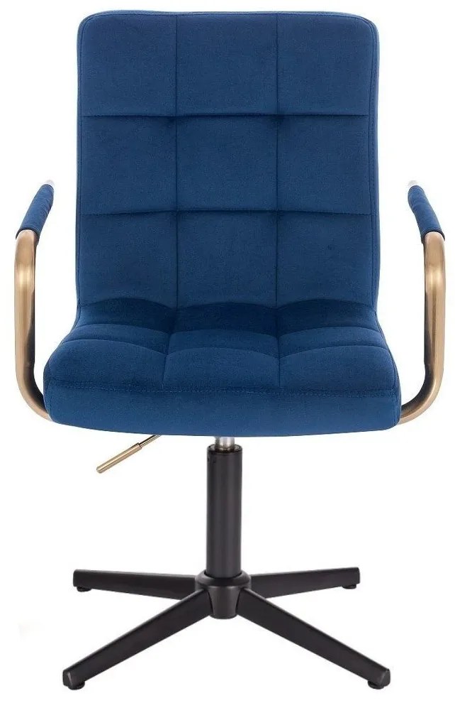 Stolička VERONA GOLD VELUR na čiernom kríži Stolička je vhodná pre moderné kuchyne, reštaurácie, bary, exkluzívne obchody, salóny krásy, kaderníctvo, elegantné kancelárie, stánky na veľtrhoch, informačné miesta. Moderná a pohodlná stolička s jednoduchým, ale originálnym tvarom potiahnutá moderným a príjemne jemným velúrom (semišom). Ide o materiál, ktorý je silnejší, odolnejší a jednoduchší na údržbu ako bežné tkaniny. Elegantný vzhľad dodávajú stoličke aj zlaté podrúčky. Kovová konštrukcia je výškovo staviteľná, pevná, zaručuje stabilitu stoličky. - Pneumatické nastavenie výšky - Otočné sedadlo (360 stupňov) - Kovová stabilná základňa Rozmery sedadla na obrázku - výška sedadla od zeme min. - 38 cm - Výška sedadla od zeme max. - 56 cm Nosnosť 120 kg