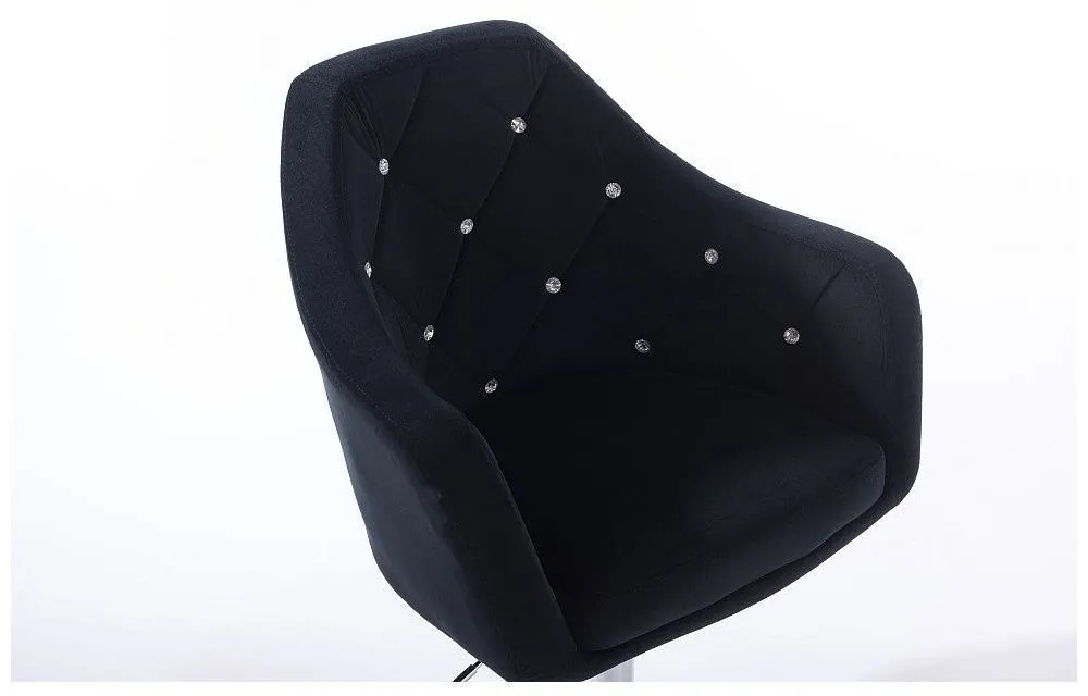 Barová stolička ROMA VELUR na zlatej hranatej podstave Barová stolička zaujme svojim originálnym designom aj náročného užívateľa. Pre svoj elegantný vzhľad je vhodným vybavením nielen moderných kaviarní a barov, ale aj domácností. Sedák aj opierka chrbta sú polstrované a potiahnuté prešitým semišom. Prešívaná opierka je zdobená kryštálmi. Poťah - Velúr (semiš) - zamatovo hebký a mäkký materiál, ktorý je silnejší, odolnejší a jednoduchší na údržbu ako bežné tkaniny. Oceľová konštrukcia je výškovo staviteľná, zaručuje dokonalú stabilitu stoličky. Maximálny komfort pri sedení umožňuje aj opierka nôh. - pneumaticky nastaviteľná výška - otočné sedadlo (360 stupňov) - stabilná kovová základňa Rozmery sedadla na obrázku. Výška sedadla od zeme min. - 60 cm Výška sedadla od zeme max. - 80 cm Maximálna nosnosť : 120 kg