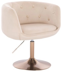 Kreslo MONTANA VELUR na zlatom tanieri Moderné a pohodlné kreslo s jednoduchým, ale originálnym tvarom vyrobené z moderného a príjemného semišu. Kreslo je vhodné pre salóny krásy, kaderníctvo, moderné kuchyne, reštaurácie, bary, elegantné kancelárie, exkluzívne obchody, stánkyna veľtrhoch, informačné miesta, ale aj domácnosti. Pre velúr alebo semiš je typický jeho zamatovo hebký a mäkký povrch, materiál je silnejší, odolnejší a jednoduchší na údržbu ako bežné tkaniny. Prešitá opierka je zdobená potiahnutými gombíkmi. Kovová konštrukcia je výškovo staviteľná, zaručuje dokonalú stabilitu kresla. - Pneumatické nastavenie výšky - Otočné sedadlo (360 stupňov) - Kovová stabilná základňa - Rozmery na obrázku - výška sedadla od zeme min. - 42 cm - výška sedadla od zeme max.- 55 cm - Nosnosť 120 kg