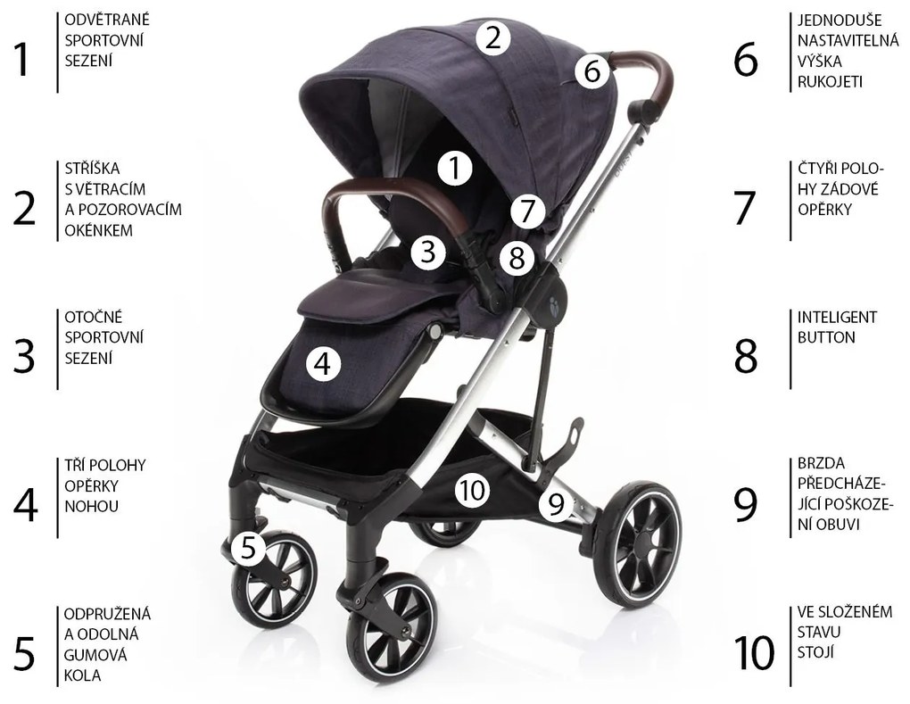 Ľúbivý a inteligentný spoločník Kočík Zopa QUEST predstavuje nielen praktický športiak, ale po dokúpení hlbokej korby a autosedačky sa stáva plnohodnotným kombinovaným kočíkom. Navyše pri jeho vývoji došlo oproti predchodcom k niekoľkým významným vylepšením - čo sa týka dizajnu, funkčnosti a pohodlia. Kočík Zopa QUEST ponúka otočné športové sedenie, ktoré je dôležité pre udržanie kontaktu medzi rodičom a menším dieťaťom. Novinkou však je, že podvozok možno skladať s nasadeným športovým sedením, a to v smere aj v proti smere jazdy. Pričom v zloženom stave kočík sám stojí a nechcenému rozloženie bráni poistka umiestnená po strane kočíka. Navyše, zložený kočík sa vďaka rúčke ľahko prenáša. Ďalšou novinkou je systém poistiek Intelligent buttons pre hladkú manipuláciu a jednoduchšie zložení športového sedenie z podvozka. Funguje to tak, že postupne odistíte postranné poistky a potom už len ľahko sedenie vyzdvihnete. Komfort po celý rok Kočík QUEST je okrem obnoviteľné striešky s vetracím oknom vybavený aj novým All Season Seat. To vášmu zlatíčko v sedačke zaručí príjemnú klímu aj počas sparných letných dní. V princípe ide o to, že celá chrbtová opierka je tvorená pevnou vetracie sieťkou, ktorá je v chladných mesiacoch uzatvorená vložkou športového sedenie. Tú môžete v letných mesiacoch ľahko zložiť a vášmu malému pasažierovi tak vytvoriť jedinečné, plne odvetrané sedenie. Samozrejmosťou u kočíka QUEST je polohovanie chrbtovej opierky do úplného ľahu, a to pomocou poistky. Vďaka nej môžete sedačku nastaviť do 4 polôh a k tomu upraviť aj 3polohový opierku pre nožičky. O bezpečie vášho milé deti sa potom postarajú 5bodové bezpečnostné pásy, ktoré sú výškovo nastaviteľné podľa jeho veľkosti. Hladká jazda a bravúrny ovládanie Ďalšou novinkou u kočíka QUEST je, že si cez poistku môžete jednoducho nastaviť výšku rukoväti. Pohodlnú a ničím nerušenú jazdu aj v zložitejšom teréne vám zaručí odpruženie všetkých 4 gumových kolies v novom dizajne. Tie sú rovnako mäkká ako nafukovacie, ale sú navyše bezúdržbová. Teda nehrozí ich prepichnutie. Pohodlná jazda pri kočíku QUEST je zaistená nielen kvalitným odpružením, ale aj dostatočnú veľkosťou kolies. Preto kočík disponuje prednými kolesami s priemerom 7 palcov a zadnými dokonca o veľkosti 9 palcov. O virtuózna ovládanie a ľahkú manipuláciu s kočíkom QUEST sa postará nielen kvalitné odpruženie a dostatočne veľká gumová kolesá, ale aj výškovo nastaviteľná rukoväť a predné kolieska s automatickou aretáciou. Pričom obe zadné kolesá je možné súčasne zabrzdiť brzdou s centrálnym ovládaním. Zabránite tak nechcenému rozjazde kočíka. Navyše, brzdový pedál je navrhnutý tak, aby sa sešlapával iba zhora. Tým si nepoškodíte svoju obuv. Ďalšou nevyhnutnou súčasťou kočíka je priestranný košík s kapacitou až 5 kg, ktorý vám umožní mať všetky dôležité veci vždy pri sebe. Súčasťou kočíka je navyše aj pláštenka a nánožník. Prednosti kočíka v kocke Od narodenia (po dokúpení korby) až do 22 kg váhy dieťaťa Otočné športové sedenie Výškovo nastaviteľná rukoväť 4 polohový chrbtová opierka, s pomocou poistky nastaviteľná až do ľahu 3polohový nastavenie opierky nôh Odvetrávané športové sedenie All seasons seat Výškovo nastaviteľné 5bodové polstrované bezpečnostné pásy Predĺženie strieška s vetracím a pozorovacím okienkom Nožná brzda predchádzajúce poškodenie obuvi Odklápacie hrazda pre jednoduchšie vkladanie a vyťahovanie dieťaťa Mäkké odpruženie všetkých 4 kolies Kvalitná gumová kolesá odolná proti prepichnutiu Automatická aretácia predných kolies Ľahké skladanie so športovým sedením (pre oba smery) Držadlo na prenášanie zloženého kočíka Inteligent buttons pre jednoduché zložení športového sedenie z podvozka V zloženom stave kočík sám stojí a disponuje madlom na prenášanie Poistka proti nechcenému rozloženiu kočíka Priestranný košík s nosnosťou až 5 kg Spĺňa požiadavky EN 1888: 2018 Hmotnosť a rozmery Športiak rozložený (D x Š x V): 92 × 55,5 × 110 cm Športiak zložený (D x Š x V): 81 × 45,5 × 55,5 cm Hmotnosť: 11 kg V cene balenia Podvozok so športovým sedením a strieškou nánožník pláštenka Súčasti na dokúpenie hlboká korba Adaptéry na autosedačku