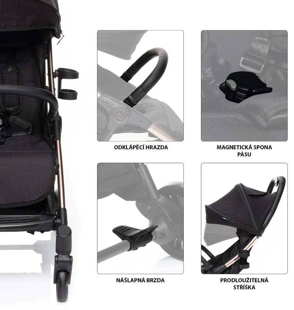 Pevný podvozok s nízkou hmotnosťou, malé rozmery a zloženie jednou rukou. To sú hlavné dôvody, prečo si kočík Quiq zamilujú rodičia, ktorí radi cestujú. Odvezie deti od narodenia až do 22 kg. Odpružené kolesá zvládnu prechádzky v prírode aj po dlažobných kockách v mestách. Vďaka kompaktným rozmerom zaberie minimum miesta. určený pre deti do 22 kg konštrukcia s nízkou hmotnosťou zloženie jednou rukou, po zložení stojí samostatne otočné predné kolesá s možnosťou zaistenia v smere jazdy zadná parkovacia brzda opierka chrbta nastaviteľná do 3 pozícií vrátane úplného ľahu polohovateľná opierka nožičiek 5-bodový pás s magnetickou sponou madlo pred dieťa rozšíriteľná slnečná strieška priestranný nákupný kôš Hmotnosť: 6,7 kg Tovar skladom u dodávateľa. Dostupnosť si overte mailom na objednavky69@gmail.com Adresa dodávateľa ZOPA design s.r.o., Záhřebská 562/41, 120 00 Praha Česká Republika, +420 517 546 505, support@zopadesign.com Bezpečnostné informácie Príručky s bezpečnostnými informáciami sú k dispozícii na adrese https://zopadesign.com/cs/manualy/