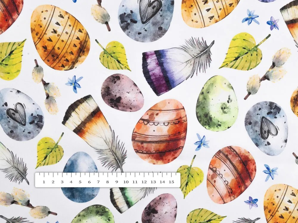 Biante Dekoračný záves TF-075 Farebné kraslice a pierka na bielom 140x200 cm