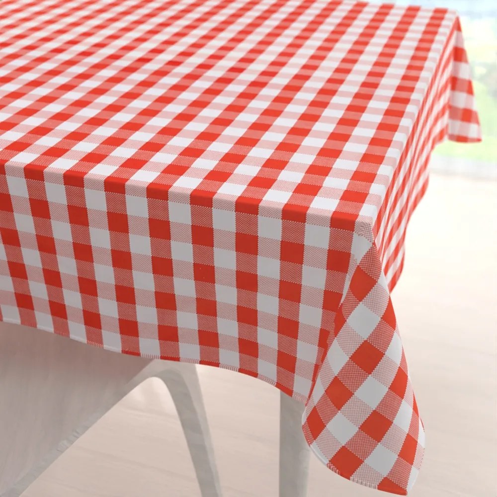 Teflónový štvorcový obrus na jedálenský stôl so vzorom červeno-bielych kociek vo veľkosti 2,5 x 2,5 cm, vyrobený zo 100% polyesterovej látky s vodoodpudivou a nešpinivou teflónovou úpravou. Je stálofarebný, nezráža sa a veľmi ľahko sa udržuje. Okraje obrusu sú zatavené do tvaru malých oblúčikov - viď. detailné foto, na želanie môžeme obšíť klasickým rovným stehom. Dekoračné obrusy sú praktickým doplnkom interiéru Vášho domu, bytu, chalupy a sú vhodné aj do hotelov a reštaurácií. Ako správne zvoliť rozmer obrusu? Uvedené rozmery sú rozmery obrusu, nie stola. Bežný doporučený presah obrusu je cca 20-30 cm na každú stranu stola, tzn. ak máte stôl s rozmerom napr. 60x60 cm, objednávajte obrus s rozmerom 100x100 cm až 120x120 cm, vždy však s prihliadnutím na vlastné individuálne požiadavky. Šijeme v našich krajčírskych dielňach v ČR, ponúkame aj rozmery na mieru.