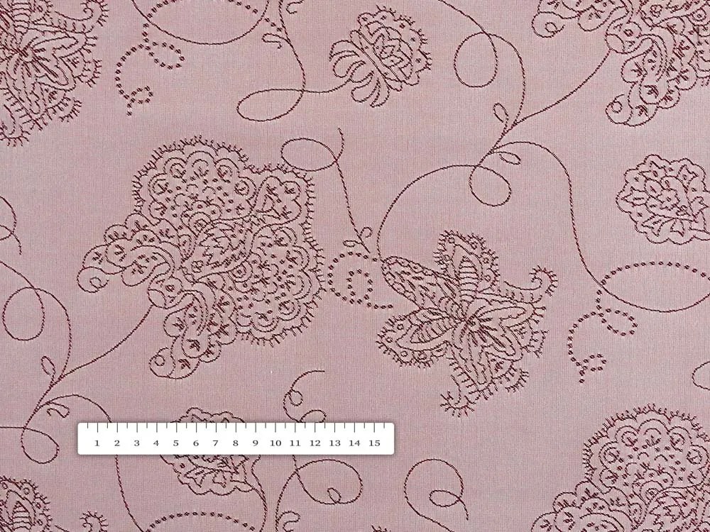 Teflónový behúň na jedálenský stôl s vytkávaným vzorom kvetovaných ornamentov na staroružovom podklade, ušitý zo 100% polyesterovej látky s vodoodpudivou a nešpinivou teflónovou úpravou, s gramážou 190 g/m2. Je stálofarebný, nezráža sa a veľmi ľahko sa udržuje. Okraje behúňa sú zatavené do tvaru malých oblúčikov - viď. detailné foto, na želanie môžeme obšíť klasickým rovným stehom. Dekoračné behúne sú praktickým doplnkom interiéru Vášho domu, bytu, chalupy a sú vhodné aj do hotelov a reštaurácií. Odporúčaný presah (previs) behúňa je cca 20-30 cm na každej strane stola, tzn. ak máte stôl dlhý napr. 100 cm, objednajte behúň s dĺžkou 140 až 160 cm. Šijeme v našich krajčírskych dielňach v ČR, ponúkame aj rozmery na mieru.
