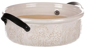 Nízky béžový keramický obal na kvety s dekorom lúčneho kvetu je skvelým prostriedkom, ktorý umocní krásu vašich kvetov či iných ozdôb v ňom umiestnených. Vďaka dvom úchytom na stranách sa s ním dobre manipuluje.Obal je úplne nepriepustný, a keď je treba, zadržiava vodu a chráni okolité prostredie pred vlhkosťou. Naopak rastlinám poskytuje lepšie podmienky, takže aj rezané kvety vydržia dlhšiu dobu v dobrej kondícii. Váš interiér tým obohatíte o vkusný dekoratívny prvok, ktorý bude plniť estetickú aj praktickú funkciu na jedničku.