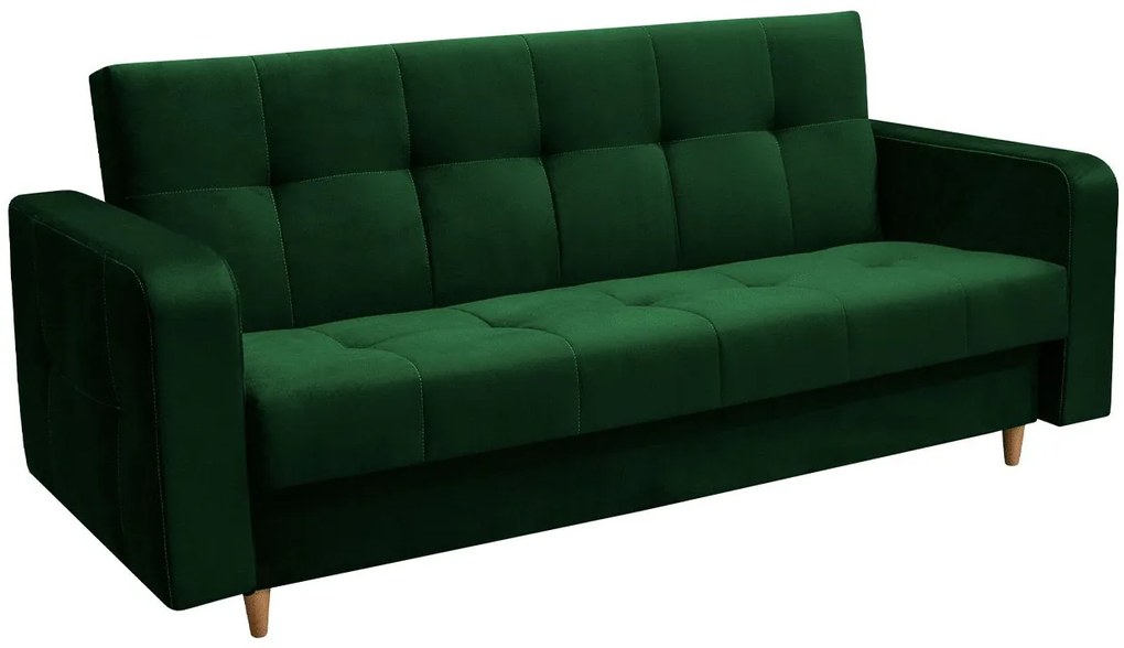 Rozkladacia pohovka Sylveti, ktorá je k dispozícii v niekoľkých zaujímavých farbách, je skvelou voľbou do obývacej izby. Hodí sa aj do izby teenagerov. Tento model ponúka miesto na spanie, čo je užitočné v rôznych situáciách. Dodatočným komfortom je úložný priestor na posteľnú bielizeň. Do priestranného úložného priestoru sa zmestia periny, vankúše, deky a iné predmety, ktoré sa používajú príležitostne. Okrem svojich funkčných vlastností ponúka naša hrdinka aj krásny vzhľad. Dekoratívne prešívanie po celej poťahovej látke pohovky dodáva celému dizajnu eleganciu. Jemné nožičky dodávajú tomuto modelu ľahkosť. Rozkladacia pohovka je ideálnou voľbou pre menšie aj väčšie izby.Rozmery:šírka: 223 cm,hĺbka: 93 cm,výška: 98 cm,Spacia plocha: 190 x 120 cmrozmery úložného priestoru:dĺžka: 180 cm,šírka: 80 cm,výška: 20 cmPrevedenie:konštrukcia vyrobená z nábytkovej dosky a borovicového dreva,pena: T 25bonnellove pružinyrozkladacia pohovka,má funkciu spánku,úložný priestor,nohy: borovicové drevo + nábytková doska,pohovka nie je voľne stojaca - operadlo je potiahnuté látkou wigofilZáruka: 24 mesiacov