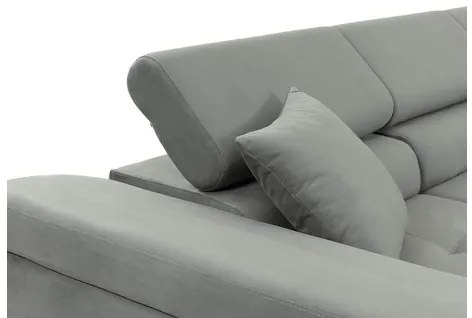 Rozkladacia rohová čalúnená sedacia súprava s úložným priestorom do tvaru L AVESTA pravá sivá