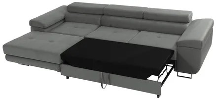 Rozkladacia rohová čalúnená sedacia súprava s úložným priestorom do tvaru L AVESTA pravá sivá