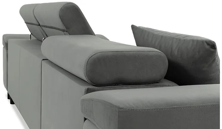 Rozkladacia rohová čalúnená sedacia súprava s úložným priestorom do tvaru L AVESTA pravá sivá