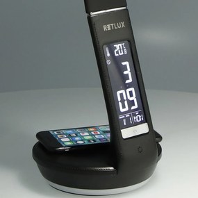 Retlux RTL 204 Stolová LED lampa s displejom a Qi dobíjaním čierna, 6 W