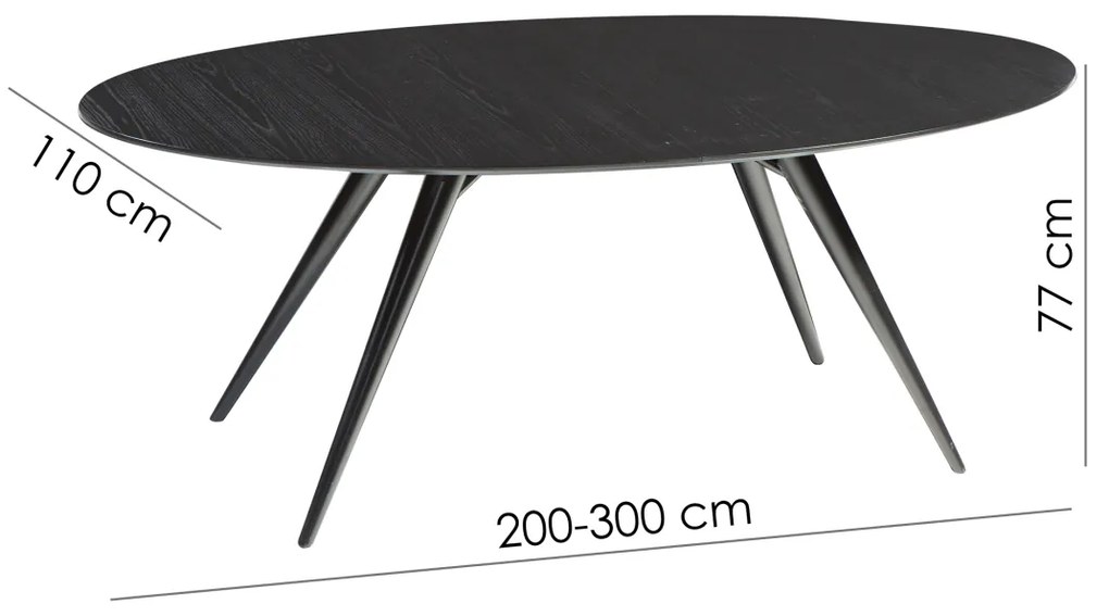 Rozkladací jedálenský stôl, ideálny do vašej domácnosti, alebo kancelárie. Má oválny tvar a elegantné kónické kovové nohy, ktoré zvyšujú jeho celkový ľahký a vzdušný dojem. Nohy stola sú z pevného kovu s matným povrchom. Vrchná doska je vo viacerých farebných prevedeniach. Stôl sa dodáva s 2 rozširujúcimi doskami a pri úplnom vysunutí sa za stôl zmestí 12 až 14 stoličiek. Výsuvný systém umožňuje kĺzanie konštrukcie, pričom nohy sú vždy na koncoch stola. Stôl bol navrhnutý s dokonalým systémom rýchleho upevnenia jeho rozširujúcej časti: po vysunutí je tento stôl dlhý a pevný bez akýchkoľvek nedokonalostí. Rozširujúce dosky sa skladujú oddelene od stola.